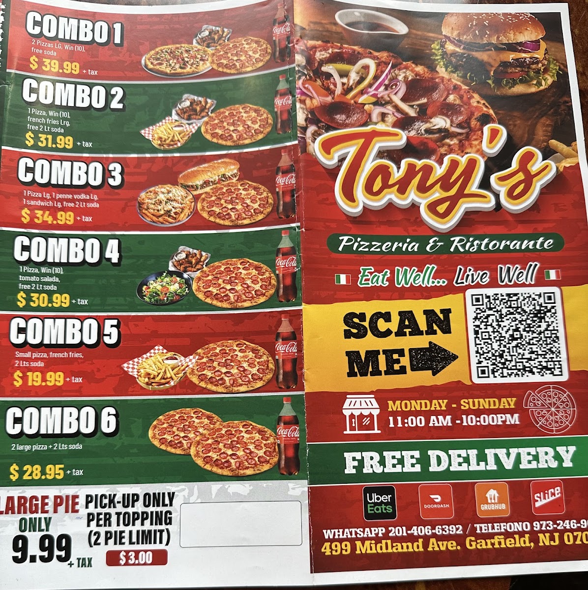 Introducing Tony's Pizzeria & Ristorante, a hidden gem nestled at 499 Midland Ave, Garfield, NJ. This charming establishment masterfully blends traditional Italian flavors with innovative twists, creating a menu that sings with authenticity.